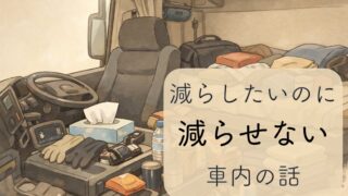 トラック運転手が車内を減らしたいのに減らせない理由を実体験で紹介。 ティッシュや食料、小物が増える不安や職業病、無理しない片付けの考え方をまとめました。